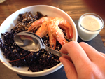 noir gluant + crevettes + sauce soja wasabi + sésame (ca c’est que j’ai pris)