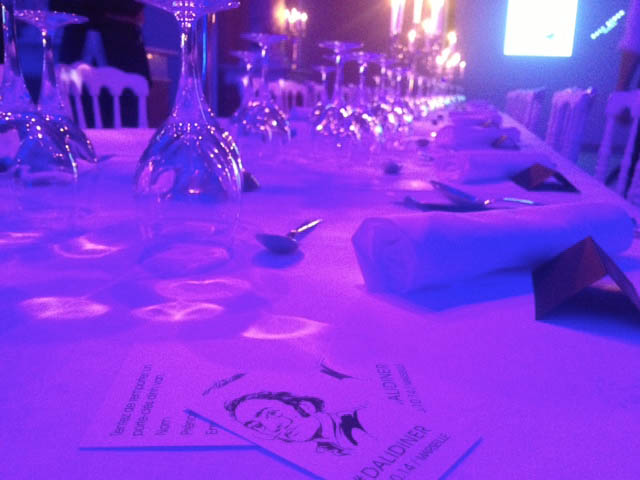 Cette vidéo de Gros Palais me fait sérieusement penser à mon dernier dîner de Gala… Un dîner Dali, orchestré en octobre à Marseille par l’agence ZAD avec le chef marseillais Emmanuel Perrodin. Pendant tout un repas, le chef de la Résidence s’est librement inspiré, du haut de ses deux DEA (dont un d’histoire, des fameux « Dîners de Gala », le cook book fabuleux écrit par Dali en 73 (Emmanuel m’a prêté son exemplaire mais on en trouve encore d’occasion à moins de 100€ sur Amazon). Dali et la bouffe, c’est évidemment un vrai sujet. « A six ans je voulais être cuisinière! « , disait-il. Dès le départ, la question titille le personnage dont la complexité, aime-t-il à rapeller « alimente et raffermit le fromage de gruyère total de ma personnalité« . Oeuf sur le plat, Pain sexe, le Pain français moyen avec deux oeufs sur le plat, à cheval, essayant de sodomiser une mie de pain portugaise, Portrait de Gala au homard, Autoportrait mou avec du lard grillé et j’en passe des Construction molle aux haricots bouillis… Dali ne se lasse jamais d’utiliser les termes gastronomiques pour « faire avaler mes idées philosophiques, difficiles et laborieuses à digérer ».